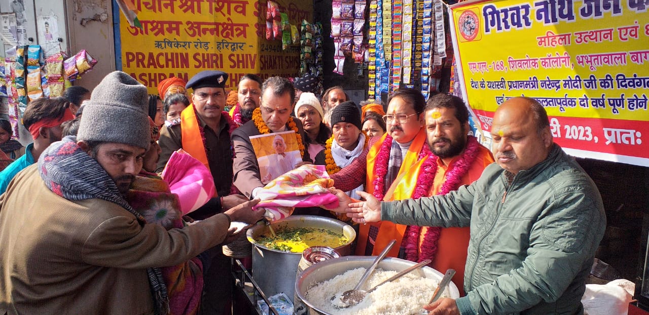 पीएम नरेंद्र मोदी की मां की याद में गिरवर नाथ जनकल्याण धर्मार्थ ट्रस्ट ने निराश्रितो को किए कंबल,भोजन वितरण और मां गंगा का किया दुग्धाभिषेक