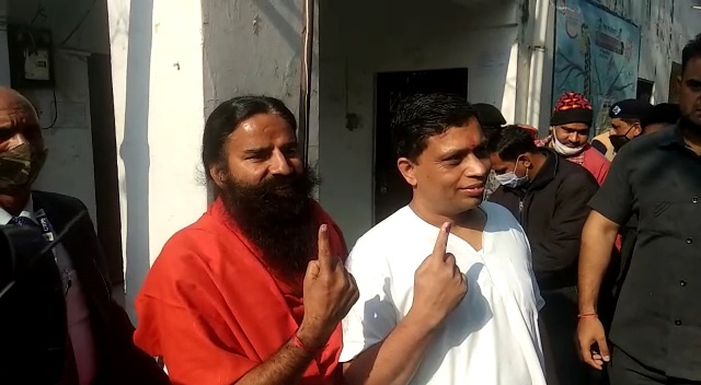 - मतदान करने पंहुचे योग गुरु बाबा रामदेव, बाबा ने कहा मेरा वोट राष्ट्र के नाम