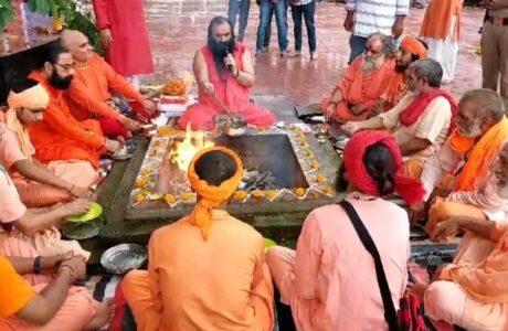 चंद्रयान 3 की सफलता के लिए हरिद्वार के मनसा देवी चरण पादुका स्थल पर संतो द्वारा विशेष यज्ञ का आयोजन किया गया