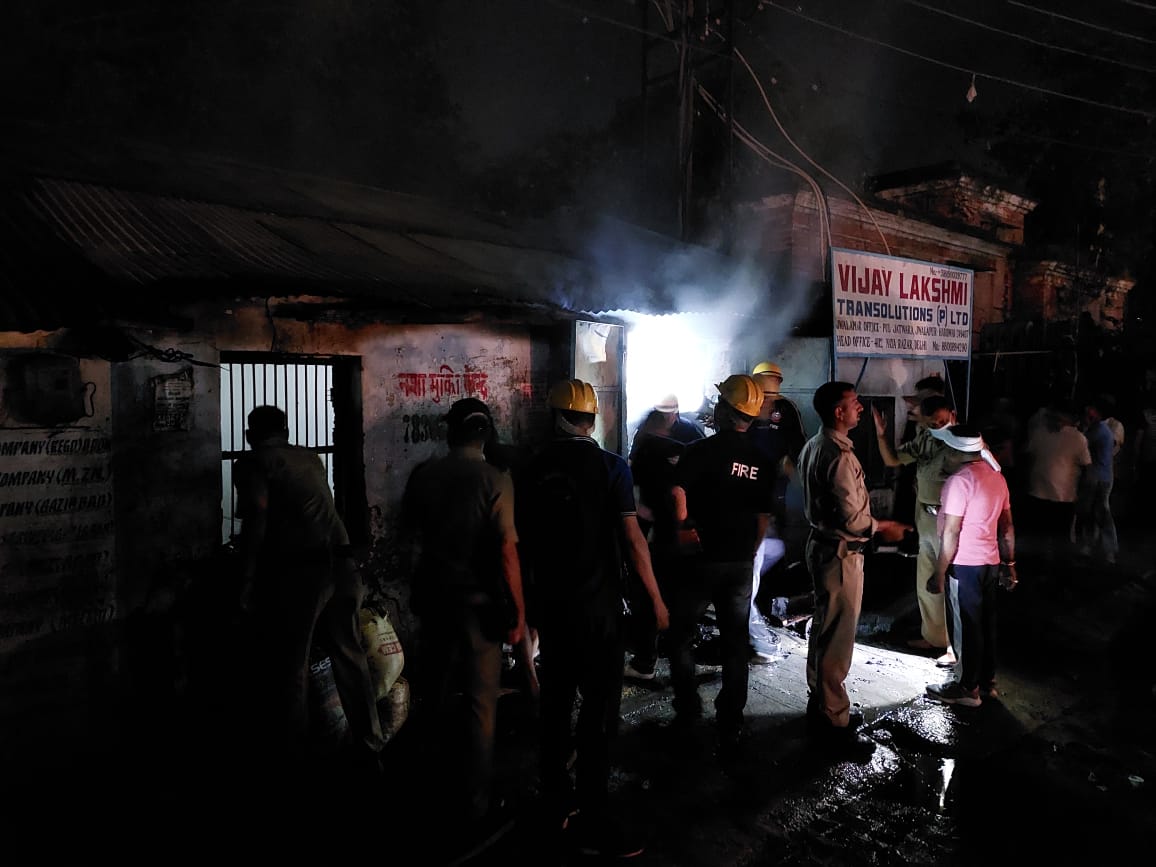 विजयलक्ष्मी ट्रांसपोर्टेशन के गोदाम में लगी आग
