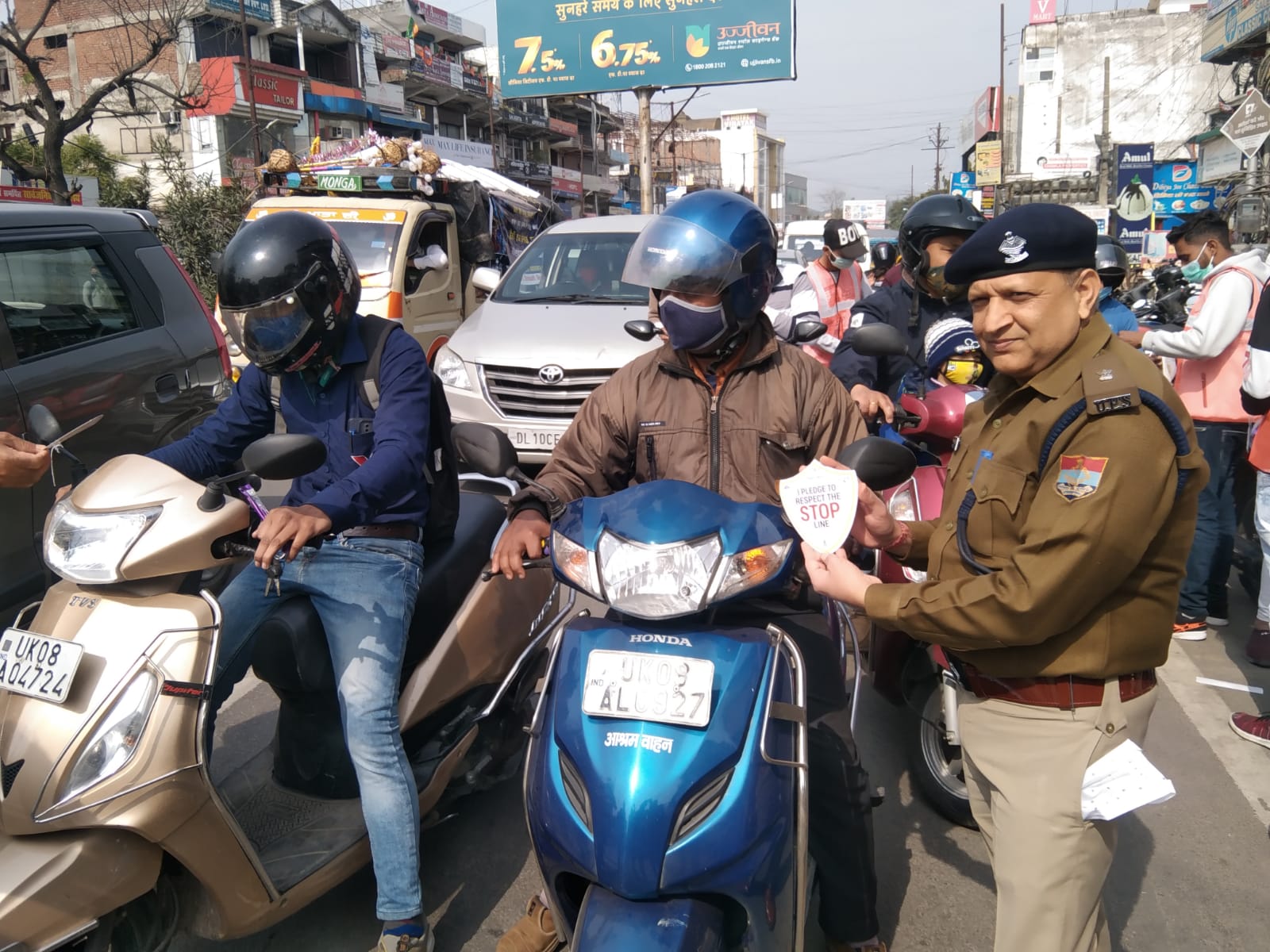 - स्टाॅप लाईन का पालन करने वाले वाहन चालकों को एसपी ट्रैफिक मनोज कत्याल ने किया सम्मानित