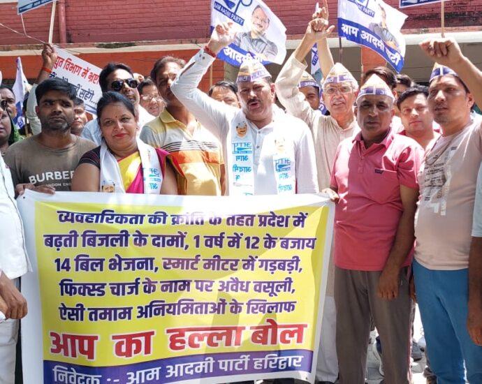 बिजली के बढ़ते दामों को लेकर आज आम आदमी पार्टी के कार्यकर्ताओं ने राज्य सरकार के खिलाफ प्रदर्शन किया और सिटी मजिस्ट्रेट को ज्ञापन सौंप कर पंजाब दिल्ली की तर्ज पर निशुल्क बिजली देने की मांग की। आम आदमी पार्टी के कार्यकर्ताओं ने आरोप लगाया कि ऊर्जा प्रदेश होने के बावजूद भी यहां की जनता को महंगी बिजली दी जा रही है। महंगे बिल भेज कर आम आदमी का उत्पीड़न किया जा रहा है जिसे बिल्कुल भी बर्दाश्त नहीं किया जाएगा। उन्होंने चेतावनी देते हुए कहा कि यदि उनकी मांग पूरी नहीं हुई तो जन आंदोलन भी किया जाएगा।