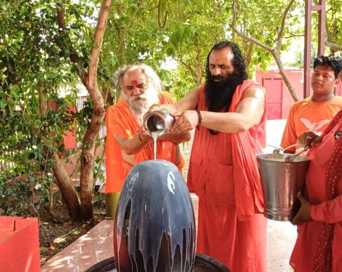 अखिल भारतीय अखाड़ा परिषद एवं मनसा देवी मंदिर ट्रस्ट के अध्यक्ष श्रीमहंत रविंद्रपुरी महाराज ने श्रावण शिवरात्रि के अवसर पर चरण पादुका मंदिर में शिवलिंग पर दुग्धाभिषेक कर विश्व कल्याण की कामना की। श्रीमहंत रविंद्रपुरी महाराज ने कहा कि भगवान शिव को सावन का महीना सबसे अधिक प्रिय है। जो भक्त सावन में सच्चे मन से भगवान शिव की उपासना करता है। उसकी सभी मनोकामनाएं पूरी होती हैं। उन्होंने कहा कि संसार के कल्याण के लिए समुद्र मंथन से निकला विष अपने कंठ में धारण करने वाले भगवान शिव अत्यन्त दयालु व कृपालु देव हैं। जो भक्तों की सूक्ष्म आराधना से ही प्रसन्न होकर अपने भक्तों की झोली भर देते हैं। भगवान शिव की आराधना अत्यन्त सरल है। भगवान शिव को प्रसन्न करने के लिए प्रतिदिन शिवलिंग पर पंचामृत से अभिषेक करें। अभिषेक करते समय माता पार्वती का भी ध्यान अवश्य करें। उन्होंने कहा कि श्रावण शिवरात्रि को ही भगवान शिव और माता पार्वती का विवाह हुआ था और भगवान शिव पूरे सावन अपनी ससुराल दक्ष महादेव मंदिर में विराजमान रहकर सृष्टि का संचालन करते हैं। महादेव शिव की आराधना कभी निष्फल नहीं जाती। शिव कृपा से असंभव कार्य भी संभव हो जाते हैं। महामंडलेश्वर स्वामी ललितानंद गिरी महाराज ने कहा कि संतों जप तप ही राष्ट्र की एकता अखण्डता कायम रखने में सार्थक साबित होता है। इस अवसर पर स्वामी राजगिरी, स्वामी आलोक गिरी, स्वामी रविपुरी, प्रोफेसर सुनील कुमार बत्रा, वैभव शर्मा, अनिल शर्मा आदि मौजूद रहे।