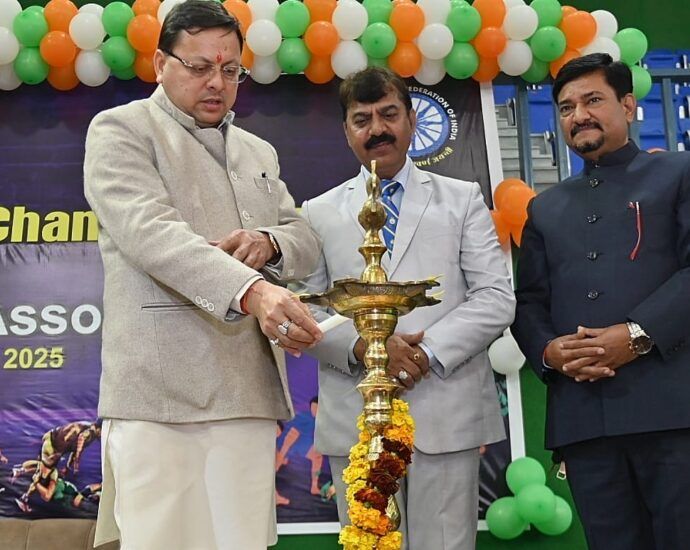 हरिद्वार 08 जनवरी 2025 – मुख्यमंत्री पुश्कर सिंह धामी ने इण्डोर स्टेडियम रोशनाबाद पहुॅचकर 50वीं राश्ट्रीय जूनियर कबड्डी चैम्पियनशिप का दीप जलाकर शुभारम्भ किया।