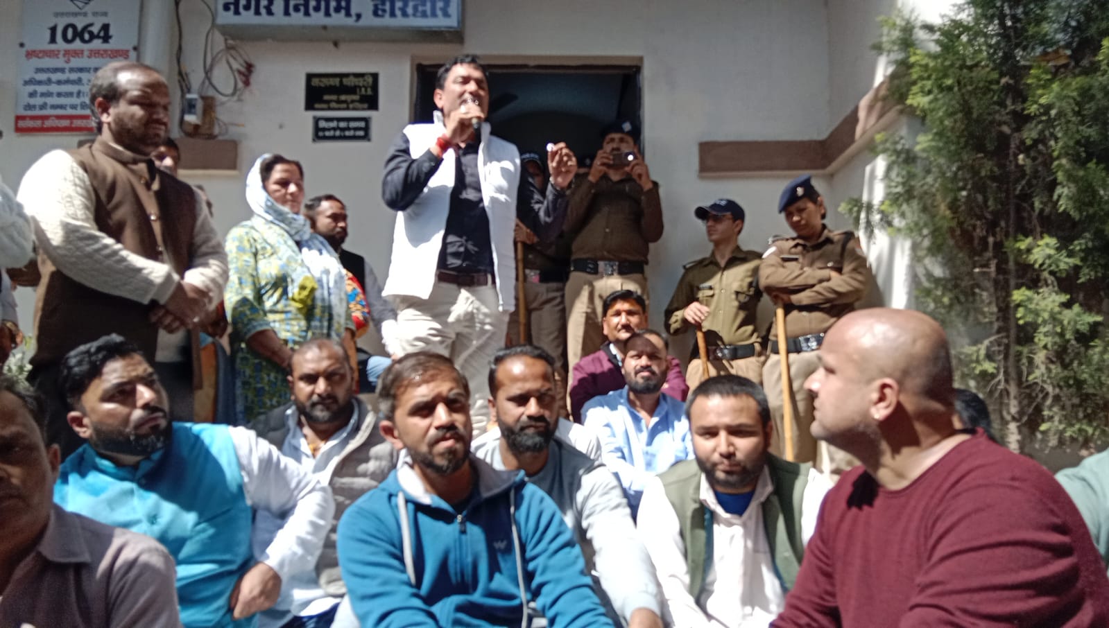 निकाय चुनाव के दौरान मतदाता सूची से स्थानीय जनता के नाम काटने पर कांग्रेस कार्यकर्ताओं ने नगर निगम स्थित मुख्य नगर आयुक्त कार्यालय का घेराव किया। इस दौरान पुलिस प्रशासन द्वारा कार्यकर्ताओं को रोका भी गया लेकिन कार्यकर्ता नहीं रुके और नगर आयुक्त कार्यालय तक पहुंच गए। कार्यालय पर नगर आयुक्त के नहीं मिलने पर समस्त कार्यकर्ता धरने पर बैठ गए और सहायक नगर आयुक्त महेंद्र यादव को ज्ञापन सौंपा। इस दौरान महानगर अध्यक्ष अमन गर्ग ने कहा कि किस अधिकारी के द्वारा स्थानीय जनता के नाम काटे गए और बाहरी लोगों के नाम जोड़े गए। ऐसे अधिकारियों के खिलाफ सख्त कार्यवाही होनी चाहिए। युवा कांग्रेस जिलाध्यक्ष कैश खुराना और युवा नेता वरुण बालियान ने कहा कि कांग्रेस जनता के बीच अपने मुद्दों को लेकर चुनाव लड़ती रही और भाजपा ने अधिकारियों की मिलीभगत से स्थानीय लोगों के नाम वोटर लिस्ट से कटवा दिए। जिससे स्थानीय लोगों को मतदान से वंचित रहना पड़ा। उन्होंने कहा कि यह लड़ाई बहुत लंबी है और जब तक जनता को न्याय नहीं मिलता तब तक इसी प्रकार अधिकारी के कार्यालय का घेराव किया जाएगा। वरिष्ठ नेता मुरली मनोहर ने कहा कि मतदाता सूची से नाम काटने का षड्यंत्र रचकर भाजपा ने बहुत निंदनीय कार्य किया। पार्षद सुनील कुमार, महावीर वशिष्ठ, विवेक भूषण विक्की ने कहा कि अधिकारी बीजेपी के कार्यकर्ता बनकर कार्य कर रहे। इन्हें इस्तीफा देकर बीजेपी की सदस्यता ले लेनी चाहिए। इस अवसर पर मेयर प्रत्याशी रहीं अमरेश बालियान, पार्षद हिमांशु गुप्ता, सोहित सेठी, विमला पांडे, पूर्व पार्षद कैलाश भट्ट, राजीव भार्गव, तनिषा गुप्ता, दीपिका गुप्ता, नितिन तेश्वर, अंकित चौहान , विकास चंद्रा, मंजू सिंह, जेपी सिंह, रमणीक सिंह, दीपक टंडन, तरुण व्यास, पुनीत कुमार, आशा कोरी, अमरदीप रोशन, लक्ष्य चौहान, शक्ति, सुरजीत, करण सिंह राणा, नवीन कुमार, नितिन यादव, अजय बिष्ट, मानू वालिया, तनु वालिया, प्रदीप कुमार, जितेंद्र तलवार, रवि बाबू शर्मा, अकरम, ऋषभ अरोड़ा, अर्जुन कश्यप, मोहित गर्ग, दीपक कंबोज, हेमंत कोरी, अशोक गुप्ता, केशव आदि सैकड़ों कार्यकर्ता शामिल थे।
