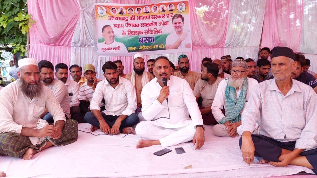 लालढांग क्षेत्र में जलभराव को लेकर कांग्रेस कार्यकर्ताओं ने दिया धरना