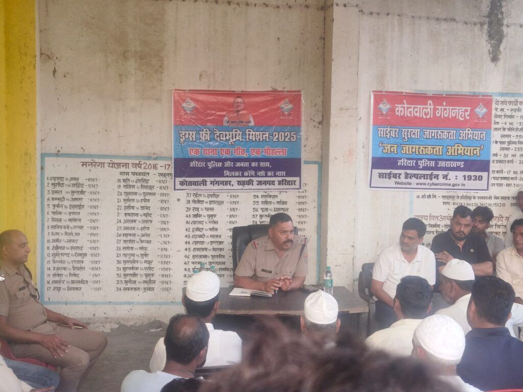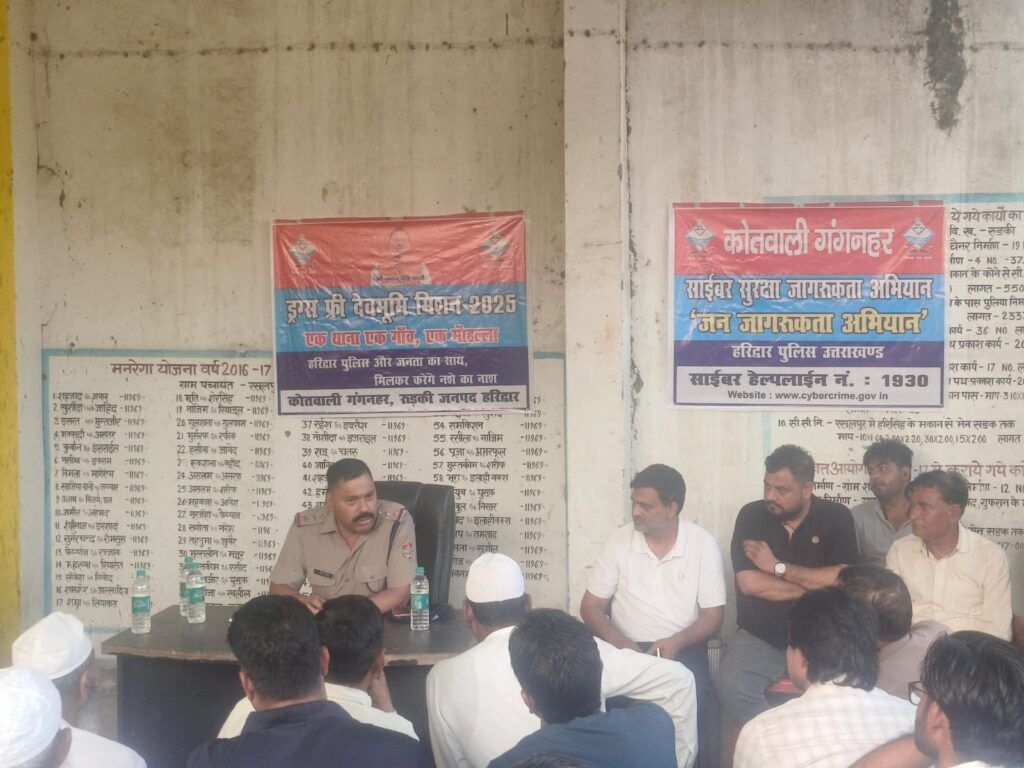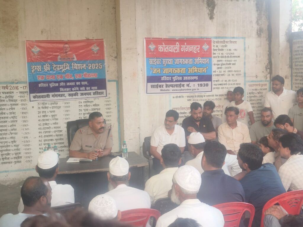 कल दिनांक 12 10.2025 को वरिष्ठ पुलिस अधीक्षक हरिद्वार के दिशा निर्देशन में ड्रग्स फ्री देवभूमि अभियान व साइबर जागरूकता के सम्बन्ध में ग्राम रसूलपुर मे प्रभारी निरीक्षक मनोहर सिंह भण्डारी द्वारा जनसमस्त ग्राम वासियों की ड्रग्स के दुष्प्रभाव के बारे में बताते हुए रोकथाम के लिए जनसहयोग की अपील की गई और साथ साइबर अपराध के बारे में जागरूक किया गया