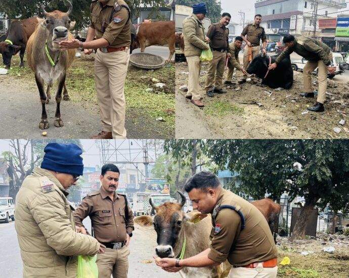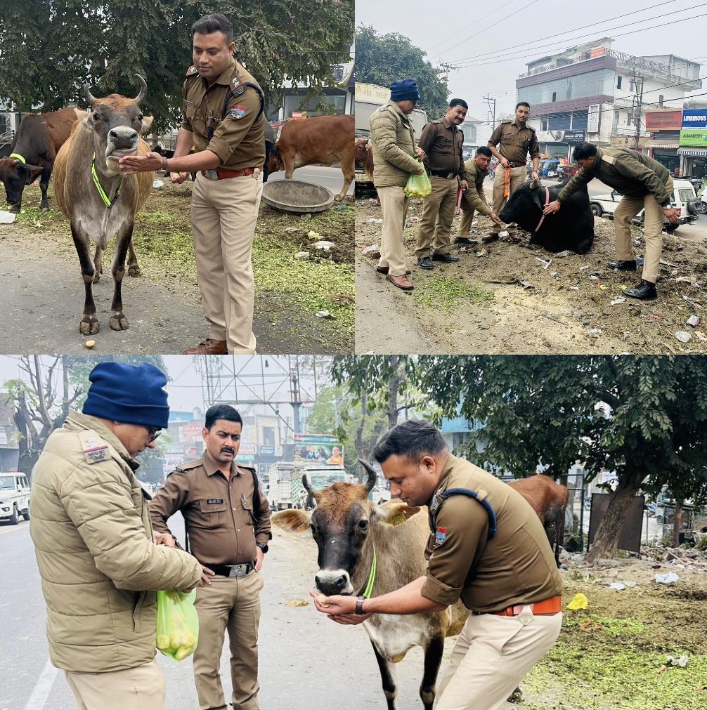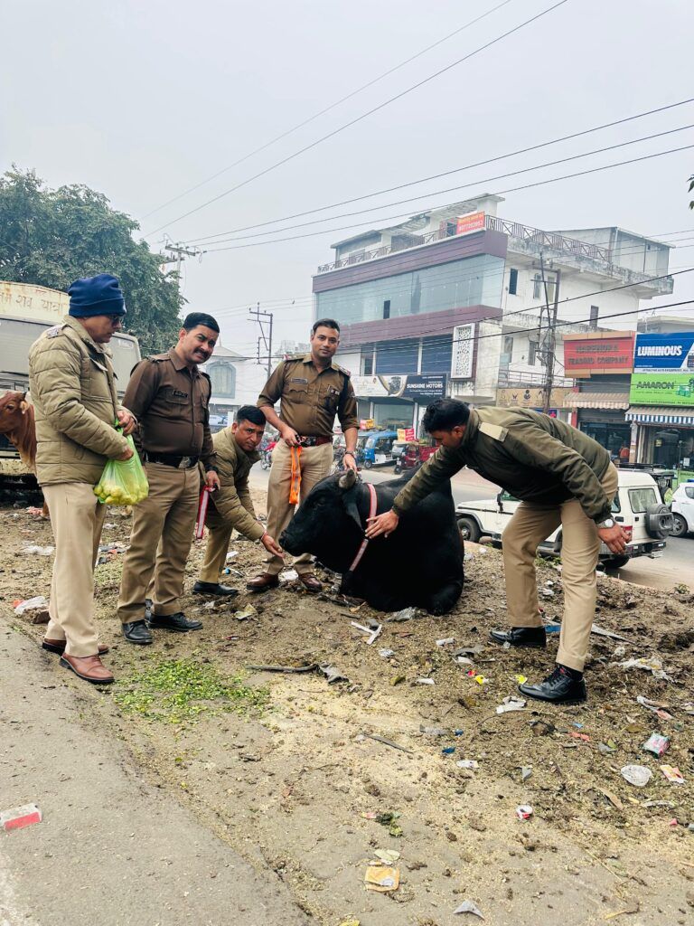 ज्वालापुर पुलिस ने चालाया गौ सुरक्षा अभियान,पशुओं को बाँधे रिफ्लेक्टर लाइट पट्टे