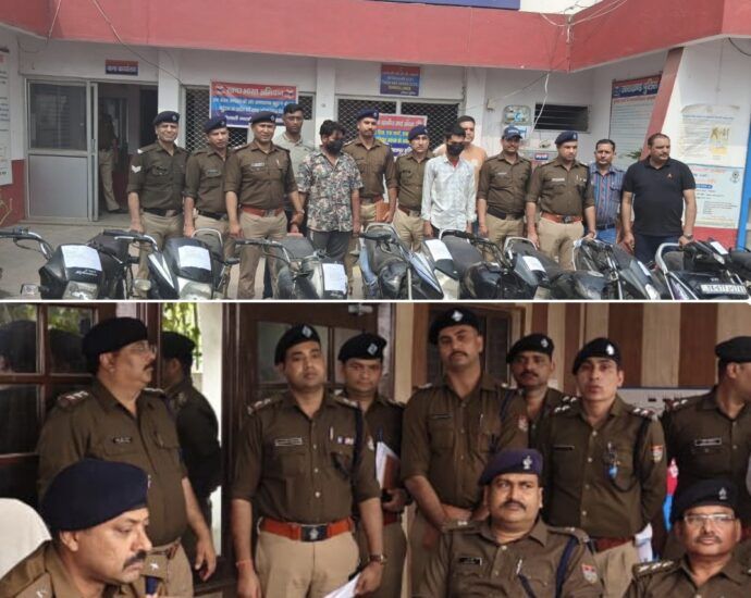 संदिग्धों से गहन पूछताछ व निशानदेही पर पुलिस टीम ने पुरानी कांवड़ पटरी के पास स्थित एक खंडहर से चोरी की 08 मोटरसाइकिलें व 02 स्कूटी बरामद कीं।