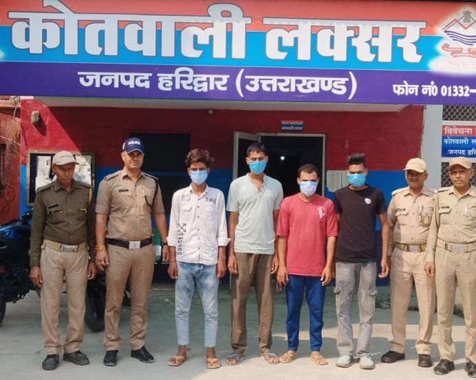 हरिद्वार, 22 अक्तूबर। लकसर कोतवाली पुलिस ने चार संदिग्धों को गिरफ्तार किया है। त्यौहारों के सीजन में आपराधिक गतिविधियों में अंकुश लगाए जाने के लिए चलाए जा रहे अभियान के तहत चेकिंग के दौरान अलग-अलग स्थान से गिरफ्तार किए गए आरोपियों कुमरुल पुत्र बाबू साहिल पुत्र सफीक समीर पुत्र मोहब्बत अली निवासी मौहम्मदपुर कुन्हारी व साहिल पुत्र राशिद अली निवासी कुन्हारी लक्सर के कब्जे से चाकू बरामद हुए हैं। चारों आरोपियों के खिलाफ आर्म्स एक्ट के तहत मुकद्मा दर्ज किया गया है।