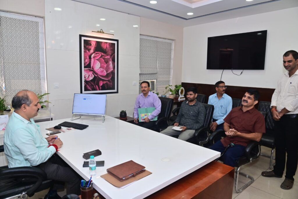 इस अवसर पर संबंधित पटल के अधिकारियों एवम् कर्मचारियों के साथ बैठक की। उन्होंने सभी अधिकारियों एवं कर्मचारियों को मार्गदर्शित करते हुए कहा कि अपना कार्य पूरी निष्ठा और संवेदनशीलता के साथ करें । उन्होंने कहा कि जो भी आमजन मानस अपनी समस्याएं लेकर विकास भवन में पहुंचते है तो उनकी समस्याओं का निराकरण प्राथमिकता से किया जाए।