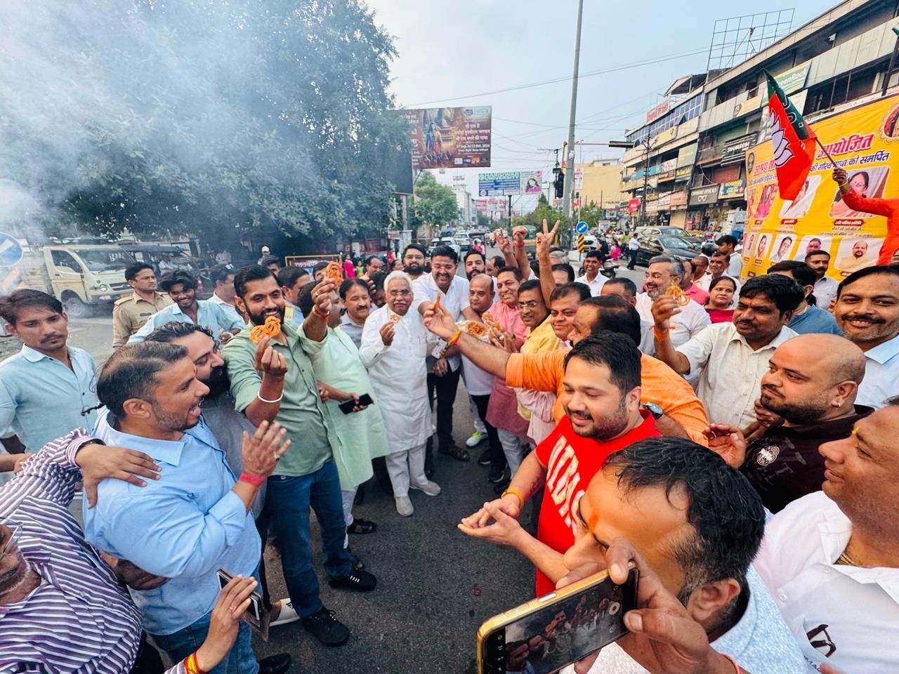 भारतीय जनता पार्टी की हरियाणा में सरकार बनने पर और जम्मू कश्मीर में आज तक के इतिहास में सबसे ज्यादा सीटें प्राप्त करने पर पार्टी कार्यकर्ताओं ने चंद्राचार्य चौक पर ढोल और आतिशबाजी कर जश्न मनाया और एक दूसरे को जलेबी खिलाकर शुभकामनाएं दी