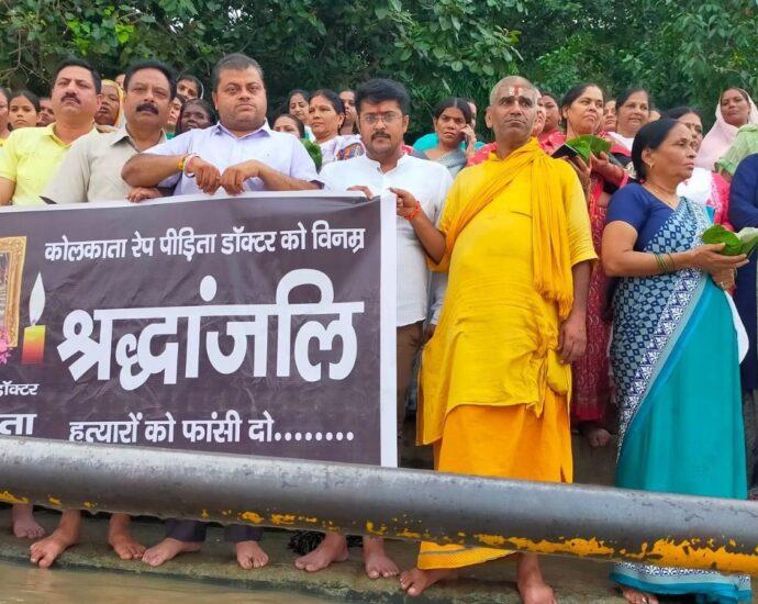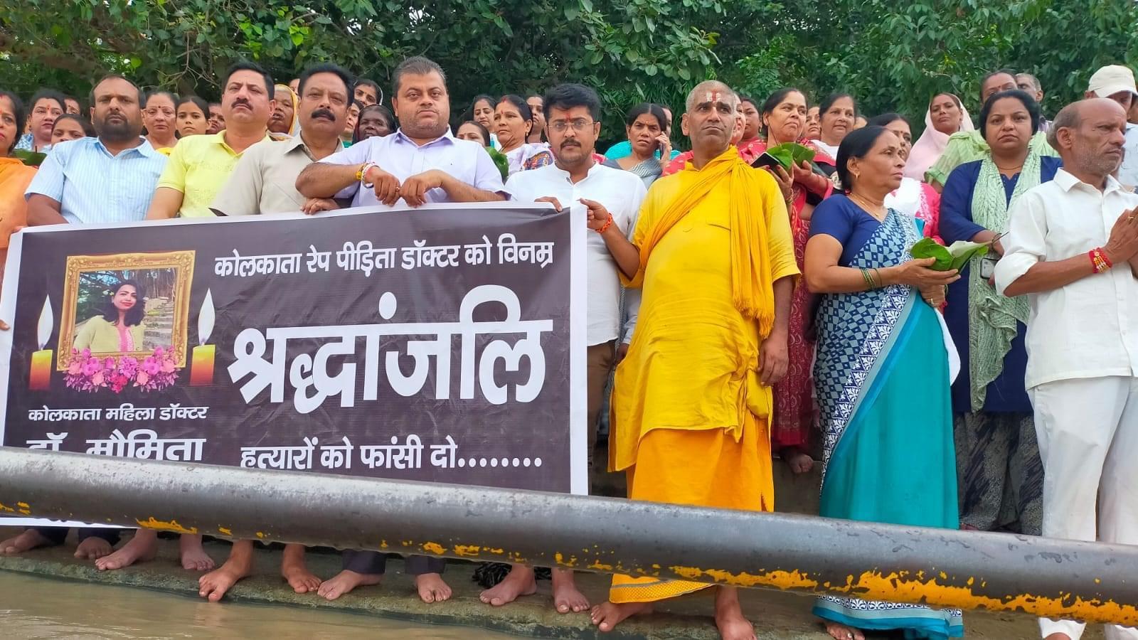 हत्या की घटना के मामले में भारतीय जनता पार्टी के लोगों ने डॉक्टर बेटी की आत्मा की शांति के लिए भीमगोडा पर मां गंगा के चरणों में दीपदान और दीप जलाकर भारत की बेटी बहन की आत्मा की शांति के लिए प्रार्थना की