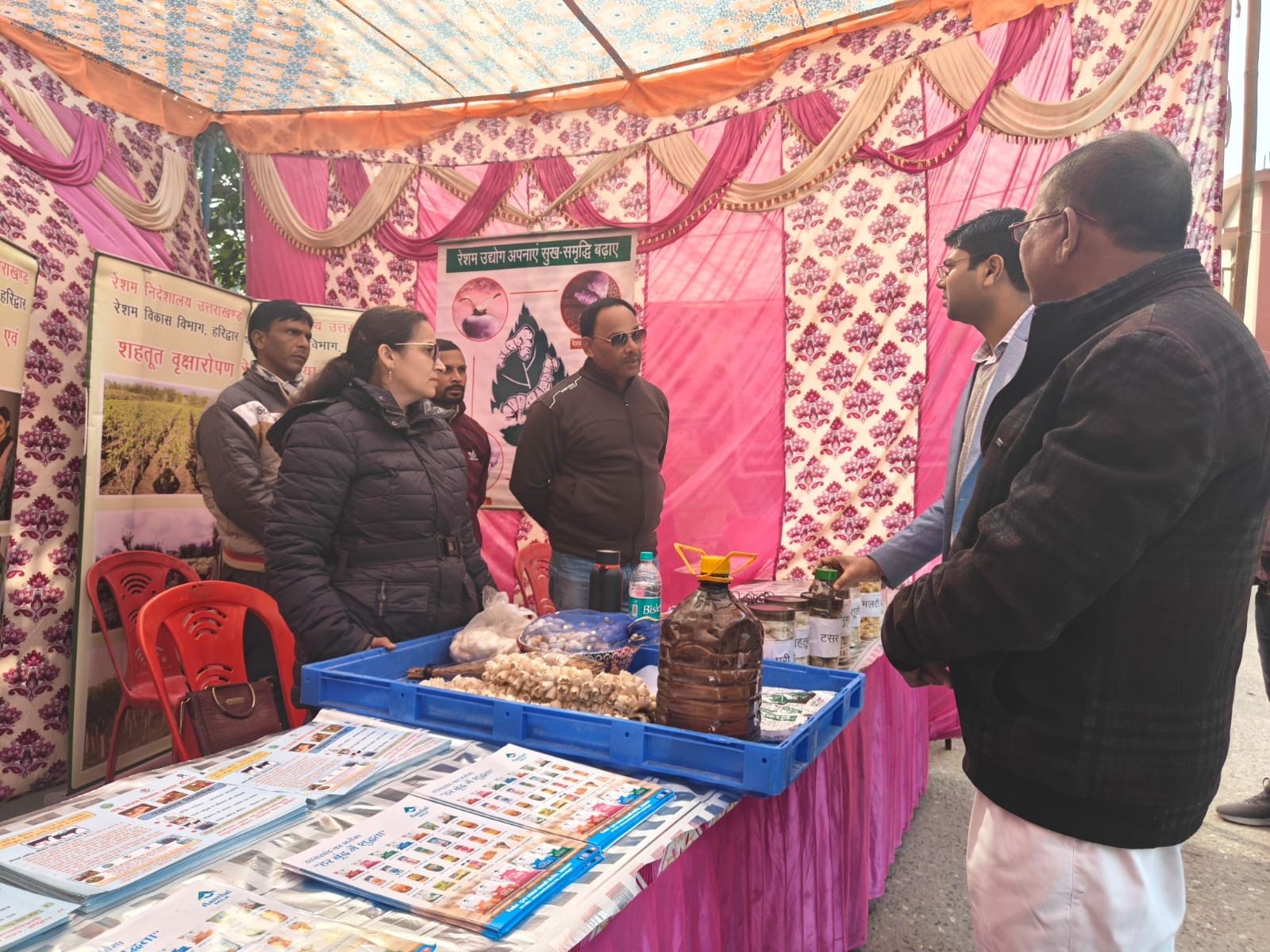 यदि किसी के पास राशन कार्ड नहीं है तो वह एपीएल राशन कार्ड के लिए आवेदन कर सकते हैं। खादी एवं ग्रामोद्योग बोर्ड हरिद्वार से अधिकारी /कर्मचारियों द्वारा प्रधानमंत्री रोजगार सृजन कार्यक्रम एवं मुख्यमंत्री स्वरोजगार योजना के संबंध में बताया गया तथा युवाओं को स्वरोजगार हेतु प्रेरित/ जागरुक किया गया। अर्जुन सिंह प्रभारी सहायक निदेशक रेशम विभाग द्वारा अपने विभाग से संबंधित योजनाओं के विषय में अवगत कराया गया। खंड विकास अधिकारी बहादराबाद मानस मित्तल द्वारा विभागों द्वारा लगाए गए स्टॉल का निरीक्षण किया गया तथा मौके पर उपस्थित ग्रामीणों की समस्या के निवारण हेतु संबंधित विभाग को निर्देशित किया गया।