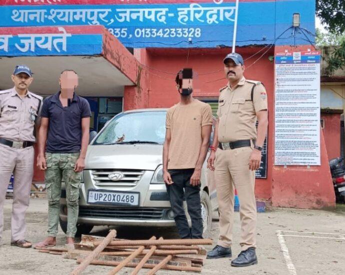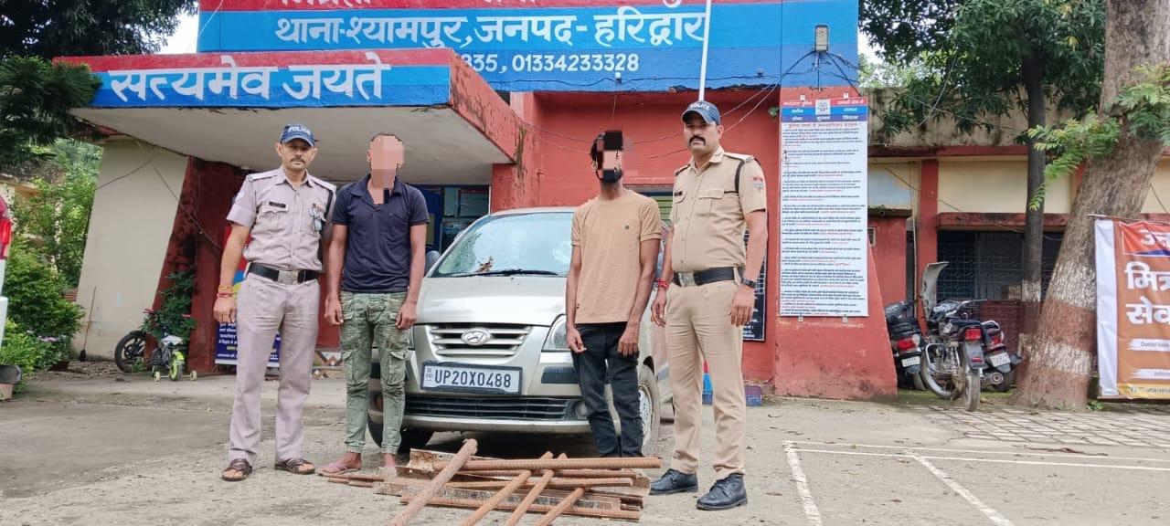थाना श्यामपुर पुलिस टीम को चैकिंग के दौरान रसियाबड नहर पटरी पुल पर एक संदिग्ध सिल्वर रंग की सेन्ट्रो कार UP20X-0488 नम्बर की खडी दिखी। जिसको चैक किया गया तो गाडी की पिछली सीट पर लोहे का सामान रखा हुआ था। अभि0गणों से और सघनता से पूछताछ की जा रही है। बरामद माल मुकदमाती व चोरी में प्रयुक्त वाहन सेन्ट्रो कार नं0 UP20X-0488 को थाना श्यामपुर पर दाखिल किया गया है। दोनों शातिर चोरों जितेन्द्र सिंह और इसरार को नियमानुसार माननीय न्यायालय के समक्ष पेश किया जायेगा ।