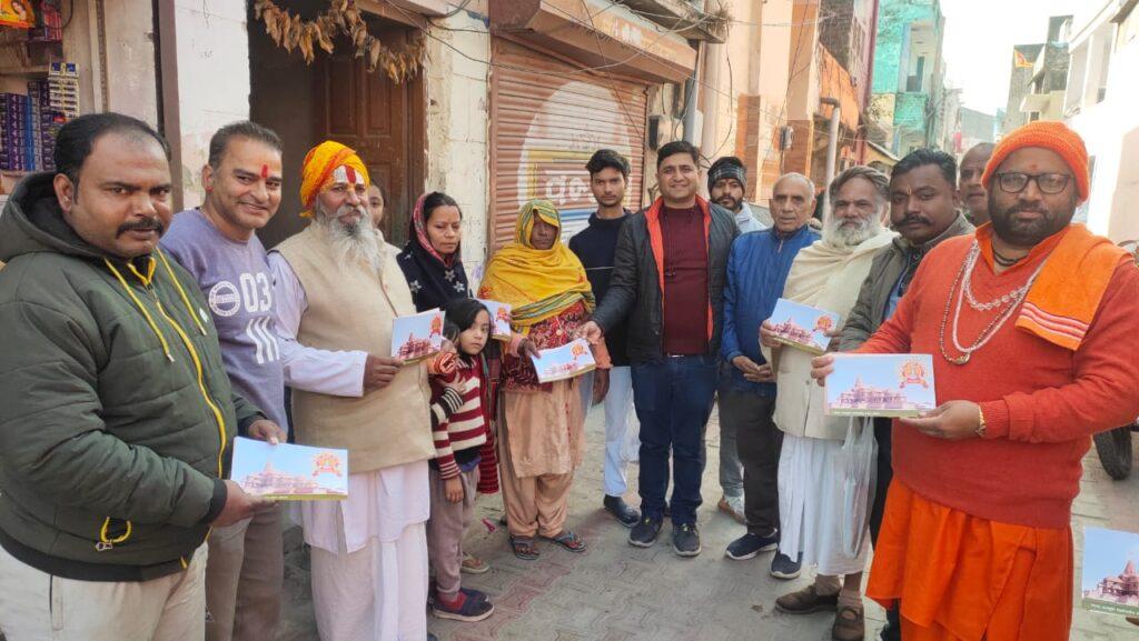 कनखल मंडल में सुनील अग्रवाल,मनोज खन्ना,राहुल वत्स, दीपक आदि ने घर घर जाकर अक्षत-निमंत्रण पत्रक व चित्र वितरित किये।