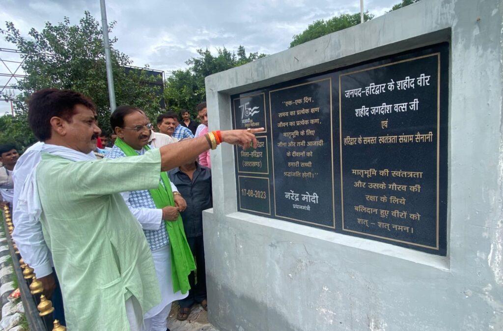 इस अवसर पर पूर्व कृषि उत्पादन मंडी समिति अध्यक्ष भाजपा नेता संजय चोपड़ा ने कहा पिछले वर्ष केंद्र और राज्य सरकार के संरक्षण में हरिद्वार रुड़की विकास प्राधिकरण नगर निगम प्रशासन द्वारा संयुक्त रूप से धर्म नगरी हरिद्वार के सभी चौक चौराहा पर शहीदों स्वतंत्रता सेनानियों की याद में छोटे-छोटे पार्क बनाए गए थे सभी पार्कों का रखरखाव नगर निगम प्रशासन की अगुवाई में युद्ध स्तर पर किया जाना चाहिए ताकि धर्मनगरी हरिद्वार में आने वाले तीर्थ यात्री वह स्थानीय नागरिक सभी पार्कों में आकर हरी भरी प्रकृति को निहार सकें उन्होंने कहा डॉ रमेश पोखरियाल निशंक ने संसद के रूप में हरिद्वार के हर क्षेत्र में केंद्र सरकार और राज्य सरकार की योजनाओं के क्रियान्वयन के लिए इच्छा शक्ति के साथ सार्थक प्रयास किए गए हैं।
