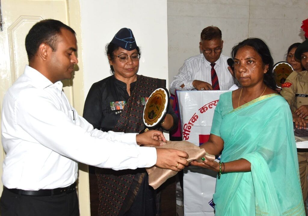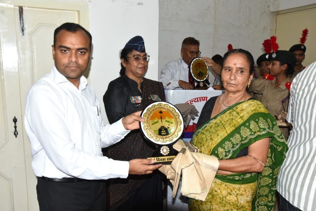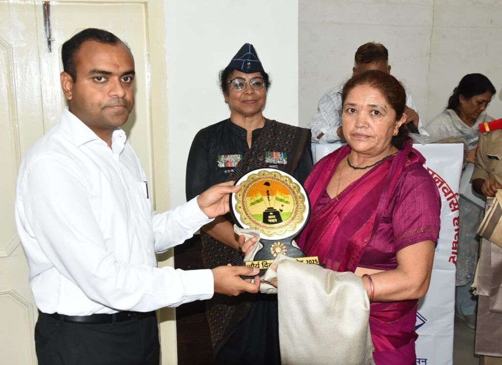 जिलाधिकारी ने शहीद सैनिकों की वीर नारियों एवं परिजनों को शॉल एवं प्रशस्ति चिन्ह भेंटकर सम्मानित किया।