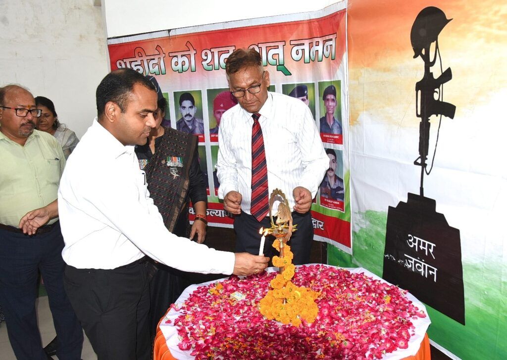 जिलाधिकारी ने कलेक्ट्रेट परिसर में कारगिल शहीद एवं शहीद सैनिकों के चित्रों पर पुष्पांजलि अर्पित कर शहीदों को नमन किया।