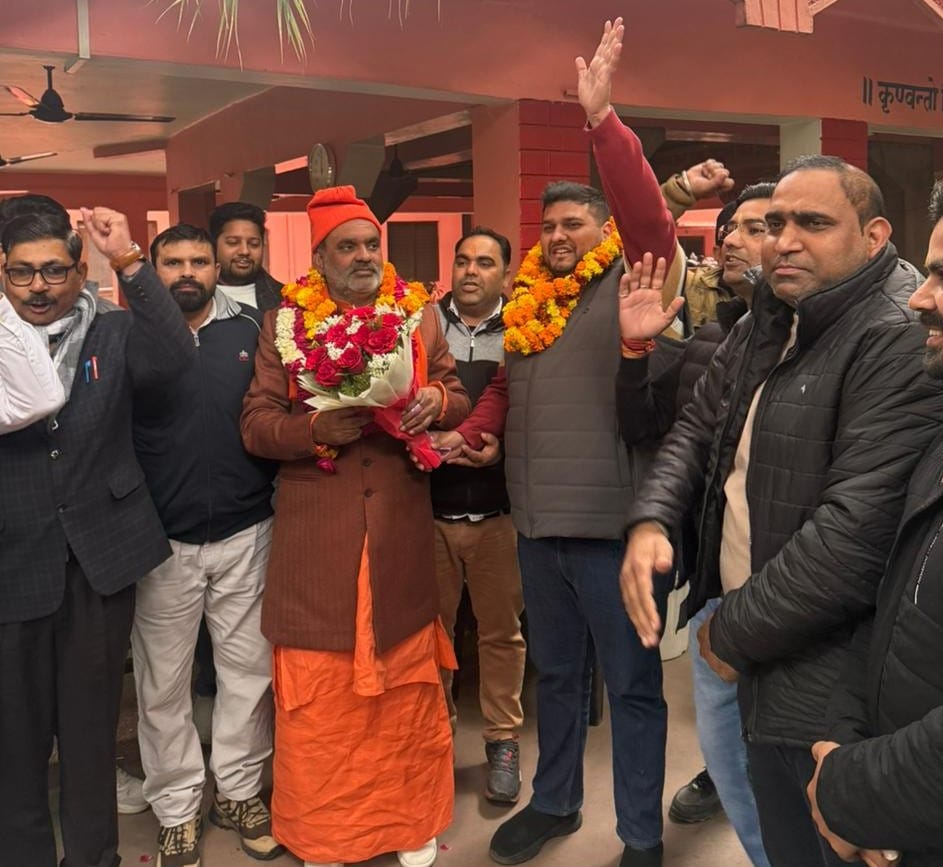 पूर्व कैबिनेट मंत्री स्वामी यतीश्वरानंद से लिया आशीर्वाद, आतिशबाजी एवं मिष्ठान वितरण कर दी बधाई