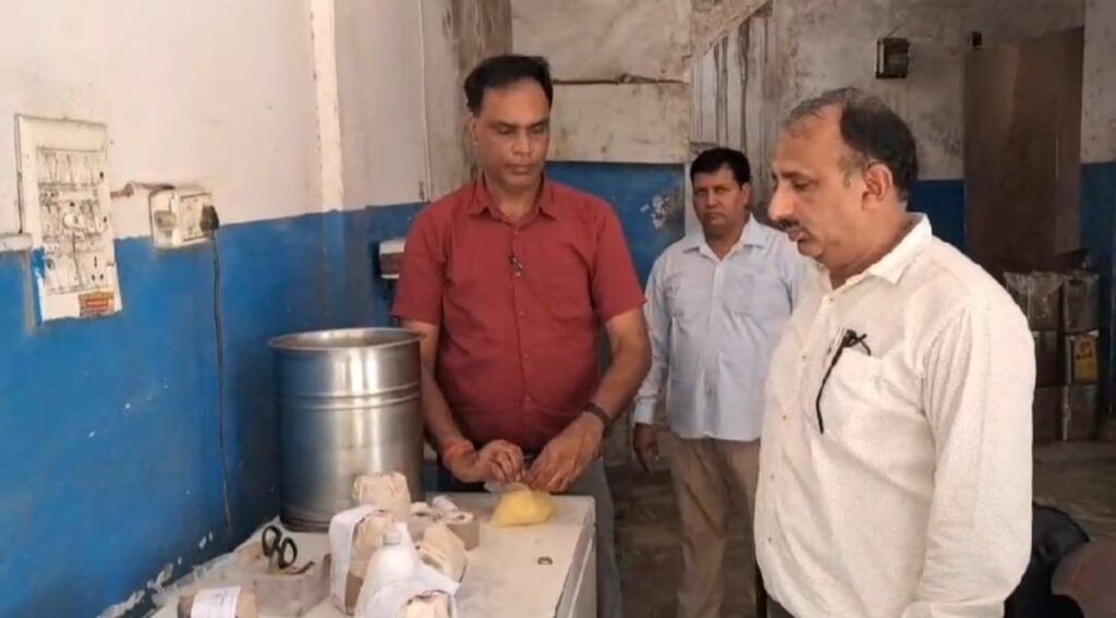 देसी घी में मिलावट के मामले सामने आने पर खाद्य सुरक्षा विभाग के अधिकारियों ने छापेमारी कर भरे सेम्पल